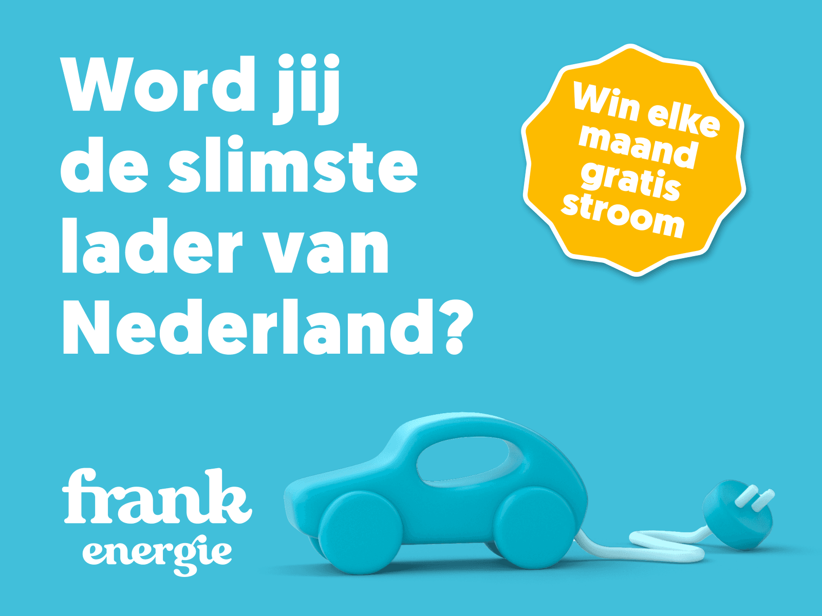 Slim laden is een van de belangrijkste instrumenten om ons stroomnetwerk te ontlasten en de energietransitie te versnellen. Iedereen die elektrisch rijdt zou dan ook slim moeten laden bij Frank. Daarom starten we per 1 januari 2024 een actie: De slimste lader van Nederland! Dat is een wedstrijd waarbij elke maand onze slimste lader zijn stroomkosten van die maand kan terugverdienen.