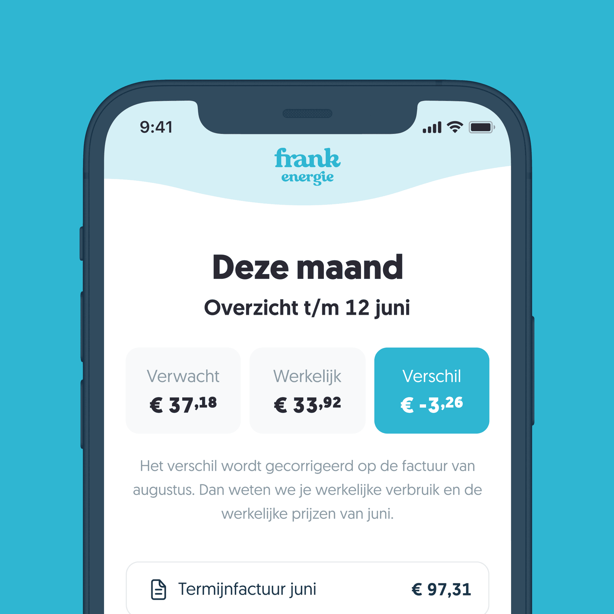 Als er aan het eind van de maand een verschil is, wordt dat gecorrigeerd op de volgende factuur.